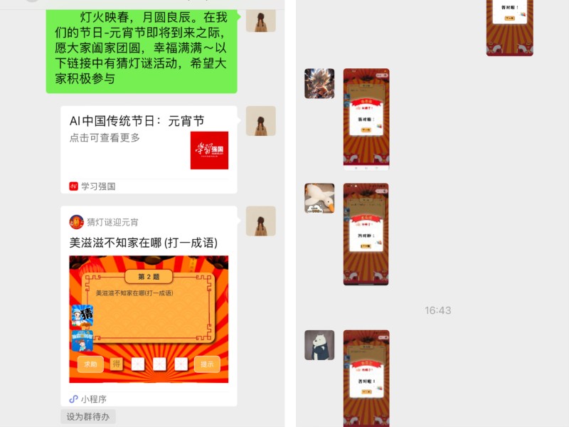 2月11日,八公司黨支部聯(lián)合太原城建工程有限公司黨支部、租賃公司黨支部、安裝公司黨支部、物業(yè)公司黨支部分別開展線上猜燈謎活動(dòng)。謎題豐富多樣,涵蓋文化、體育、娛樂、年俗及筑路機(jī)械專業(yè)知識(shí)等多個(gè)領(lǐng)域,不僅讓職工在猜謎中深切感受了傳統(tǒng)節(jié)日的獨(dú)特魅力,還鍛煉了大家的思維能力和概括能力,營(yíng)造出歡樂祥和、團(tuán)圓幸福的濃厚氛圍。
