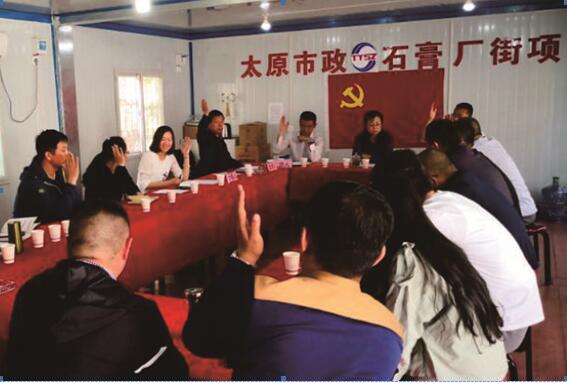 萬柏林片區(qū)臨時聯(lián)合黨支部的成立是太原市城市建設(shè)管理中心和各參建單位落實(shí)市住建委黨工委提出的“黨建進(jìn)工地、引領(lǐng)促發(fā)展”活動的生動實(shí)踐,是不斷延伸黨建工作領(lǐng)域、推進(jìn)項目黨建的重要手段。