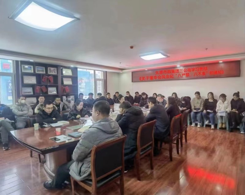太原市政集團組織黨員干部學習《省紀委關(guān)于重申會風會紀“八嚴禁、八不準”的通知》文件精神