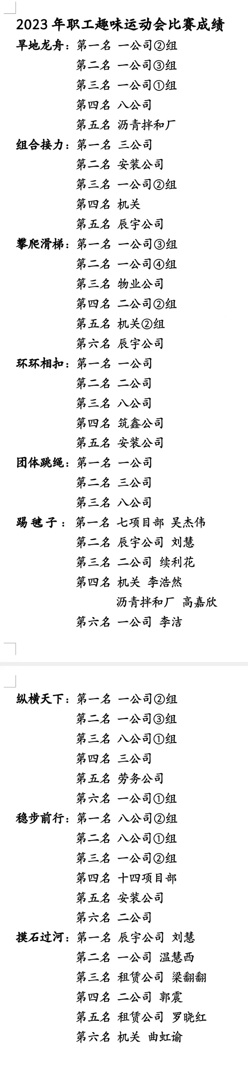 此次運(yùn)動(dòng)會(huì)主要以大型趣味項(xiàng)目為主,歷時(shí)兩天共設(shè)八個(gè)集體項(xiàng)目,兩個(gè)個(gè)人項(xiàng)目,除了保留“環(huán)環(huán)相扣”“團(tuán)體跳繩”和“踢毽子”三個(gè)傳統(tǒng)項(xiàng)目外,新增“旱地龍舟、組合接力、運(yùn)轉(zhuǎn)乾坤、攀爬滑梯、縱橫天下、穩(wěn)步前行、摸石過河”七個(gè)大型項(xiàng)目,廣大職工踴躍報(bào)名,參與人數(shù)達(dá)到900余人次。大家充分享受著運(yùn)動(dòng)帶來的快樂,用最飽滿的熱情展現(xiàn)了團(tuán)隊(duì)協(xié)作爆發(fā)出的力量,也賽出了市政人“不服輸、敢爭(zhēng)先”的精氣神。