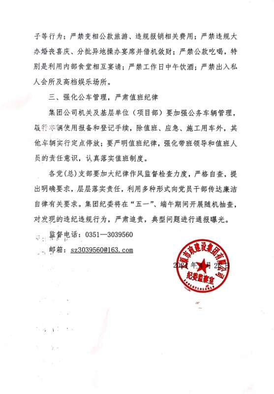 太原市政集團(tuán)關(guān)于“五一”、端午期間加強(qiáng)廉潔自律的工作提醒