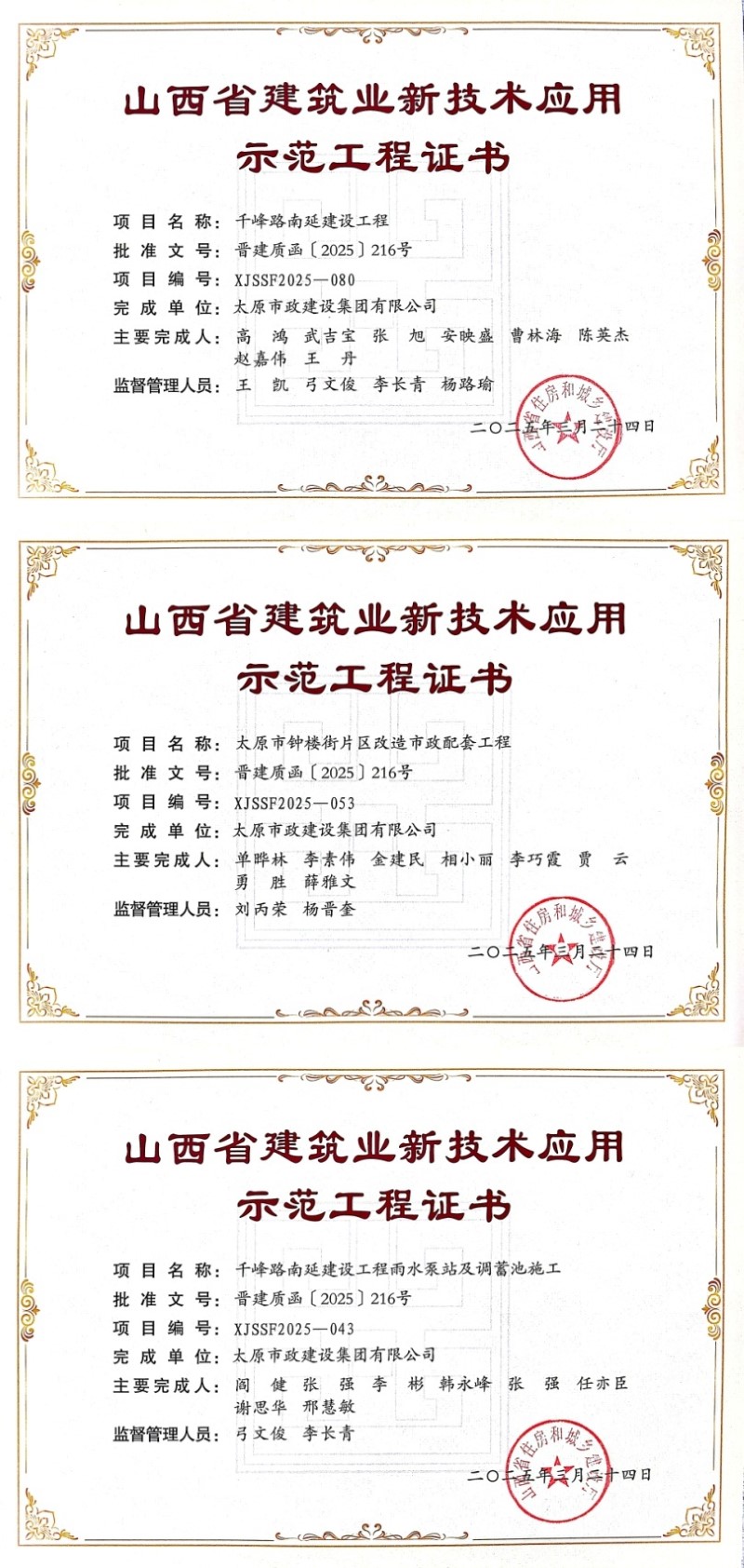 簡訊一:近日,由集團(tuán)公司承建的千峰路南延建設(shè)工程雨水泵站及調(diào)蓄池施工、太原市鐘樓街片區(qū)改造市政配套工程、千峰路南延建設(shè)工程被山西省住房和城鄉(xiāng)建設(shè)廳評(píng)為“山西省新技術(shù)應(yīng)用示范工程”。