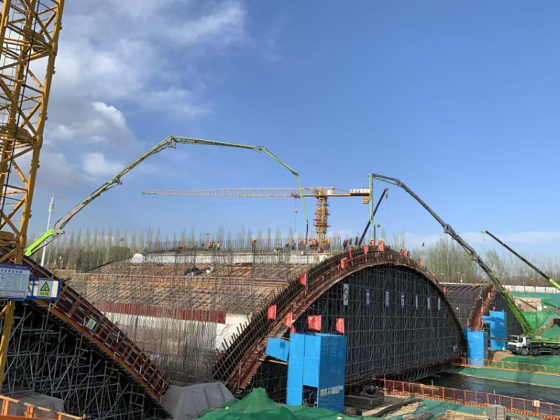 該橋采用單跨72米連續(xù)5跨設(shè)計(jì),主腹拱作為橋梁的核心承重結(jié)構(gòu),是此次橋梁施工的核心節(jié)點(diǎn),項(xiàng)目團(tuán)隊(duì)順利克服弧形施工、模板一次成型、大體量澆筑、五跨精準(zhǔn)落架等挑戰(zhàn),以“毫米級(jí)”精度貫穿施工全過程,為橋梁成型打造堅(jiān)實(shí)“筋骨”。
