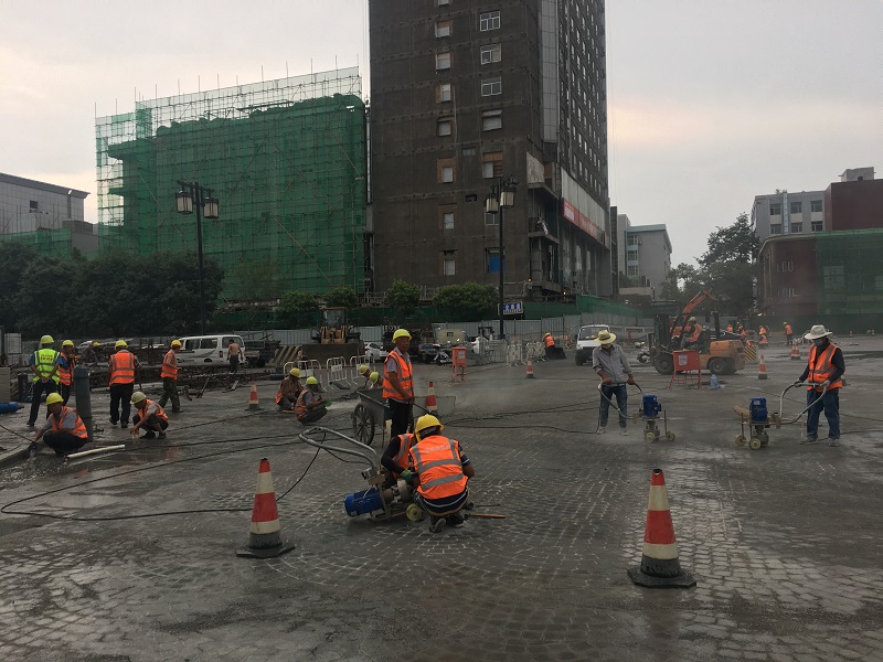 夏日的燥熱抵擋不住全體施工人員的工作熱情,為了全力推進(jìn)工程建設(shè),項目部合理延長每日施工作業(yè)時間,增加作業(yè)班數(shù),不分晝夜進(jìn)行施工作業(yè)。為了有效提高施工速度,項目部采用流水作業(yè)的施工方式,多工作面平行作業(yè),提高機械利用率。同時,項目部針對季、月、旬作出詳細(xì)計劃,建立起進(jìn)度協(xié)調(diào)工作制度,每周組織項目部管理人員及各工隊組長召開施工調(diào)度會,重點解決施工中的技術(shù)難題,以及計劃執(zhí)行情況和存在的問題,隨時根據(jù)施工情況調(diào)整各施工項目的人力、機械和材料用量,全力以赴推進(jìn)工程進(jìn)度。截至7月20日,廣場環(huán)路、迎澤南街路面磚鋪裝已完成100%,廣場西路鋪裝已完成90%,廣場東路完成63%;并州北路及廣場南路完成35%;廣場總鋪裝面積3萬多平米,已完成總鋪裝量的50%。