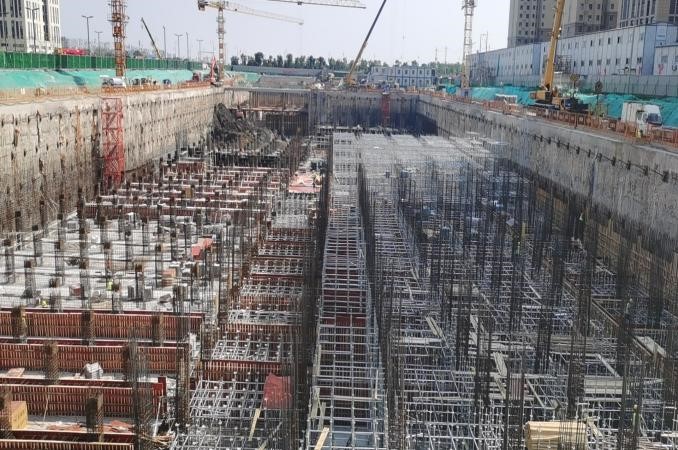 施工中,項(xiàng)目部從制度管控和具體實(shí)操入手,早部署、早落實(shí),始終做到“心中有全局,手中有物資”。該工程的施工重點(diǎn)是深基坑大體積施工,如遇強(qiáng)降雨天氣,基坑內(nèi)積水量大,無法自行排出。項(xiàng)目部根據(jù)深基坑施工現(xiàn)狀,為各施工隊(duì)伍配備排水泵,確保在24小時(shí)內(nèi)將積水排出基坑外, 并加快深基坑底板混凝土澆筑,盡早硬化底板地面;基坑兩側(cè)用沙袋設(shè)置阻水帶,提前做好邊坡防護(hù),防止雨水對(duì)深基坑造成浸泡侵蝕。同時(shí),項(xiàng)目部安排施工人員加大監(jiān)測(cè)頻率,如果發(fā)現(xiàn)數(shù)據(jù)異常,及時(shí)上報(bào)并組織專家論證,確保深基坑施工“萬無一失”。
