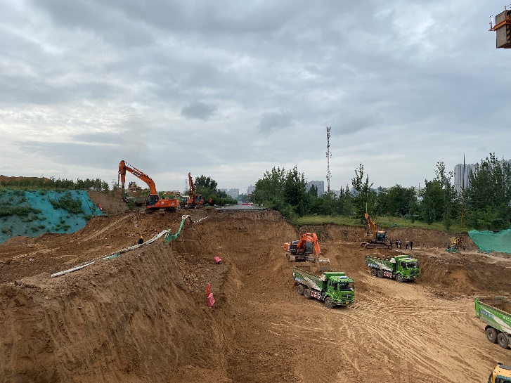 開(kāi)工伊始,為保證在工期內(nèi)保質(zhì)保量完成施工任務(wù),項(xiàng)目部將工程按照路口和節(jié)點(diǎn)劃分為三個(gè)工區(qū),采取平行作業(yè)、見(jiàn)縫插針、多點(diǎn)開(kāi)花的施工方式,搶抓施工節(jié)點(diǎn),打開(kāi)工作面。根據(jù)設(shè)計(jì)要求,該工程在下穿東山過(guò)境高速節(jié)點(diǎn)設(shè)置通道,采用全斷面分級(jí)放坡開(kāi)挖方式進(jìn)行施工。由于高速封閉、改遷、臨時(shí)保通便道的使用和恢復(fù)都需要與交警、高速公路等多個(gè)單位、部門溝通協(xié)調(diào),程序繁瑣、手續(xù)復(fù)雜。項(xiàng)目部精準(zhǔn)施策破解難點(diǎn),派專人負(fù)責(zé)溝通協(xié)調(diào),提前按要求備齊資料,在最短的時(shí)間內(nèi)辦理好了相關(guān)手續(xù)。在辦理通道施工相關(guān)手續(xù)的同時(shí),其他工區(qū)也在緊張施工,平行作業(yè)與流水作業(yè)交替進(jìn)行。截至目前,東中環(huán)到高速路以西已完成中面層瀝青混凝土鋪筑,為下穿高速通道工程的土方開(kāi)挖、外運(yùn)打通運(yùn)輸通道,為后續(xù)通道施工創(chuàng)造了良好的施工條件,贏得寶貴的施工時(shí)間。
