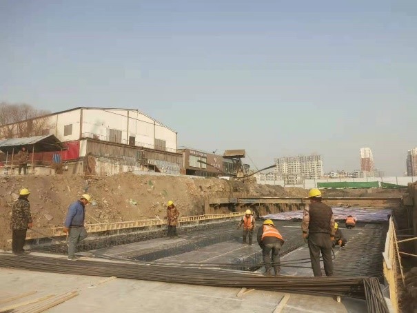 在雨水方涵的施工過程中,混凝土澆筑是整個節(jié)點施工的關鍵環(huán)節(jié),為確保頂板澆筑質量,項目部嚴格按照施工設計要求,多措并舉,有效確保了施工質量。為提高澆筑質量,項目部主動協(xié)調,聯(lián)系兩家混凝土廠商隨時供料,有效確保了混凝土澆筑的連續(xù)性;在模板澆筑過程中,嚴格按照澆筑、初凝、終凝的施工工序,在各個環(huán)節(jié)都做到精細把控;在混凝土出廠時,要求必須對罐車進行保暖措施,并在混凝土中摻半抗凍劑;在方涵支護過程中,在方涵中間用鋼斜撐進行加固,確保在混凝土澆筑時模板不發(fā)生偏斜;在方涵模板鋼筋綁扎過程中,安排質檢員隨時進行監(jiān)督,對鋼筋型號、綁扎密度、支模的標準進行了認真檢查,有效確保了方涵質量。