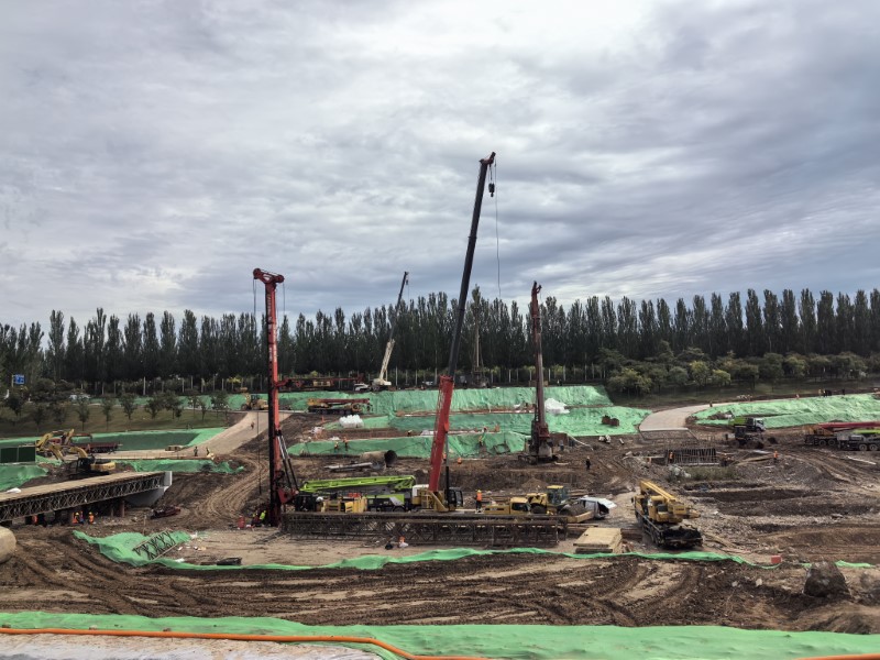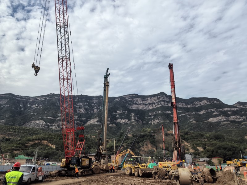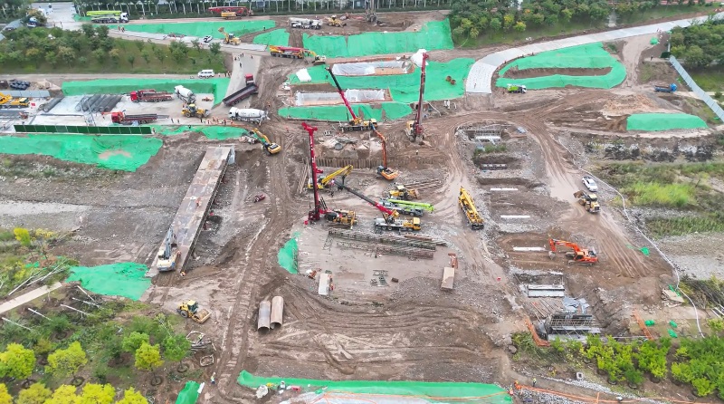 幸福橋設計為一座跨汾河大橋。項目部根據工程特點,將工程劃分為東西兩個工區(qū),分解關鍵節(jié)點工期目標,拆分成一般節(jié)點工期,再細化為每周、每日的進度計劃,層層細化,層層落實。同時,項目部安排道排、橋梁等專業(yè)施工隊,通過組織流水施工作業(yè),減少交叉作業(yè)影響,保證各工作面既滿負荷工作,又不互相干擾,加快施工進度。由于該工程施工范圍位于汾河兩岸,地質情況比較復雜,地下水位高,地下土質為卵石,開挖難度較大,施工人員先利用螺旋鉆機進行引孔,再采用“止水鋼板樁+拉森樁”的方式,起到有效防水和支護的效果。在進行橋梁基礎施工時,項目部采用正循環(huán)鉆孔灌注樁的施工工藝進行施工作業(yè),正循環(huán)鉆孔通過水泵壓送泥漿,從鉆桿柱中心進入孔底并返出,能夠快速完成鉆孔作業(yè),操作方式簡便,降低了施工難度?,進一步加快施工進度。針對工程重點難點,項目部還專門制定了《深基坑安全專項施工方案》和《高大模板支撐體系安全專項施工方案》,邀請專家進行論證,確保重點環(huán)節(jié)的施工質量。