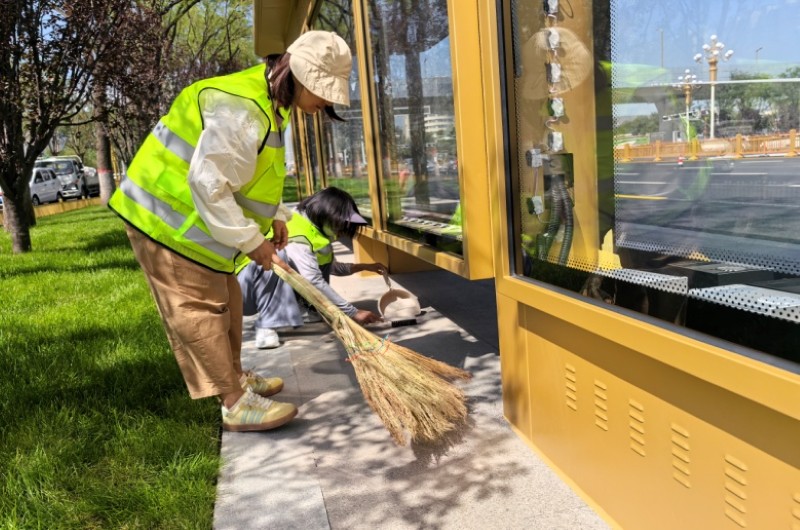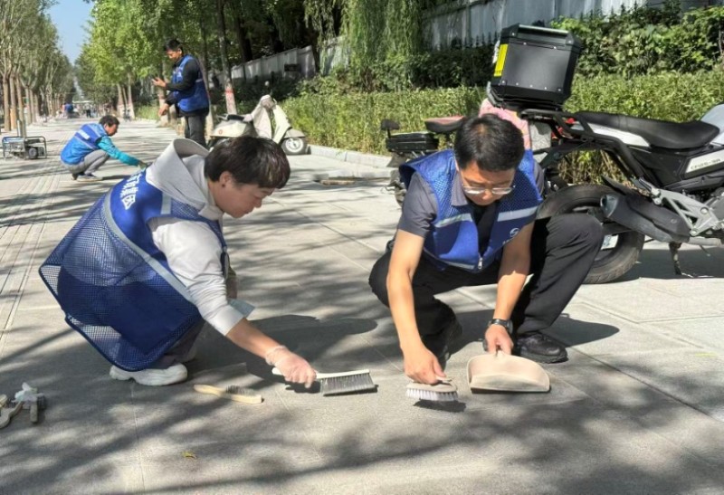 活動(dòng)自9月4日起為期六天,覆蓋迎澤大街(西段)全線,重點(diǎn)圍繞附屬設(shè)施清潔與道路精細(xì)化維護(hù)展開?;顒?dòng)中,身著統(tǒng)一藍(lán)色“太原市政集團(tuán)”馬甲的志愿者們,手持長(zhǎng)柄擦洗器、水桶、抹布、鏟刀、掃帚等工具,對(duì)道路兩側(cè)公交站臺(tái)、路燈基地、護(hù)欄、照明燈桿等設(shè)施進(jìn)行系統(tǒng)清理與擦洗;同步推進(jìn)地磚灌縫精細(xì)化維護(hù)作業(yè),通過專業(yè)操作,確保每一條裂縫都“嚴(yán)絲合縫”,有效提升路面耐用性與通行舒適度,以實(shí)際行動(dòng)為市民出行安全與舒適保駕護(hù)航;同時(shí),志愿者專門對(duì)道路沿線的石頭字景觀展開描金作業(yè),細(xì)刷蘸取金色涂料,一筆一畫精心描摹,成為主干道上一道兼具文化氣息與視覺美感的獨(dú)特風(fēng)景。