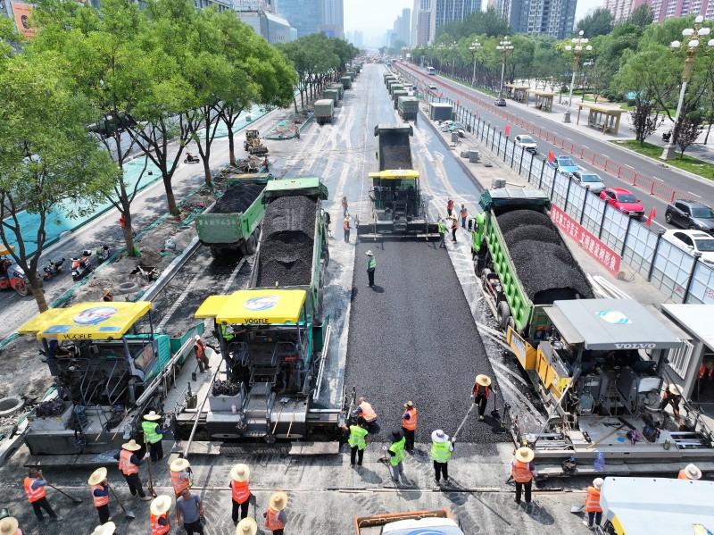 迎澤大街(西段)地下管網(wǎng)更新改造工程西起春居路,東至?xí)x祠路,全長4.3公里,紅線寬度70-80 米。主要建設(shè)內(nèi)容為更新改造迎澤大街(西段)、春居北路、前進(jìn)路、公園路、千峰路、新礦院路、文興路7條道路雨水、污水、供熱、燃?xì)獾鹊叵鹿芫W(wǎng)。太原市政集團(tuán)全面踐行“忠誠擔(dān)當(dāng)、精細(xì)極致、協(xié)同奮進(jìn)、創(chuàng)新領(lǐng)航的‘迎澤標(biāo)準(zhǔn)’”,系統(tǒng)總結(jié)迎澤大街施工經(jīng)驗(yàn),以全局思維統(tǒng)籌施工管理,以高效執(zhí)行提升工作效能,以精湛技藝雕琢城市脈絡(luò),組織1600余名施工人員第一時(shí)間完成集結(jié),240余臺(tái)機(jī)械設(shè)備以最快速度進(jìn)場(chǎng)施工,歷經(jīng)125天日夜攻堅(jiān),更換、新建雨水管線7.3公里,污水管線6.2公里,完成82萬平方米瀝青攤鋪,2.9萬平方米花崗巖人行道磚鋪裝……于9月10日順利竣工通車,新時(shí)代市政人以實(shí)干擔(dān)當(dāng),奮力書寫全面再現(xiàn)“錦繡太原城”盛景新篇章。