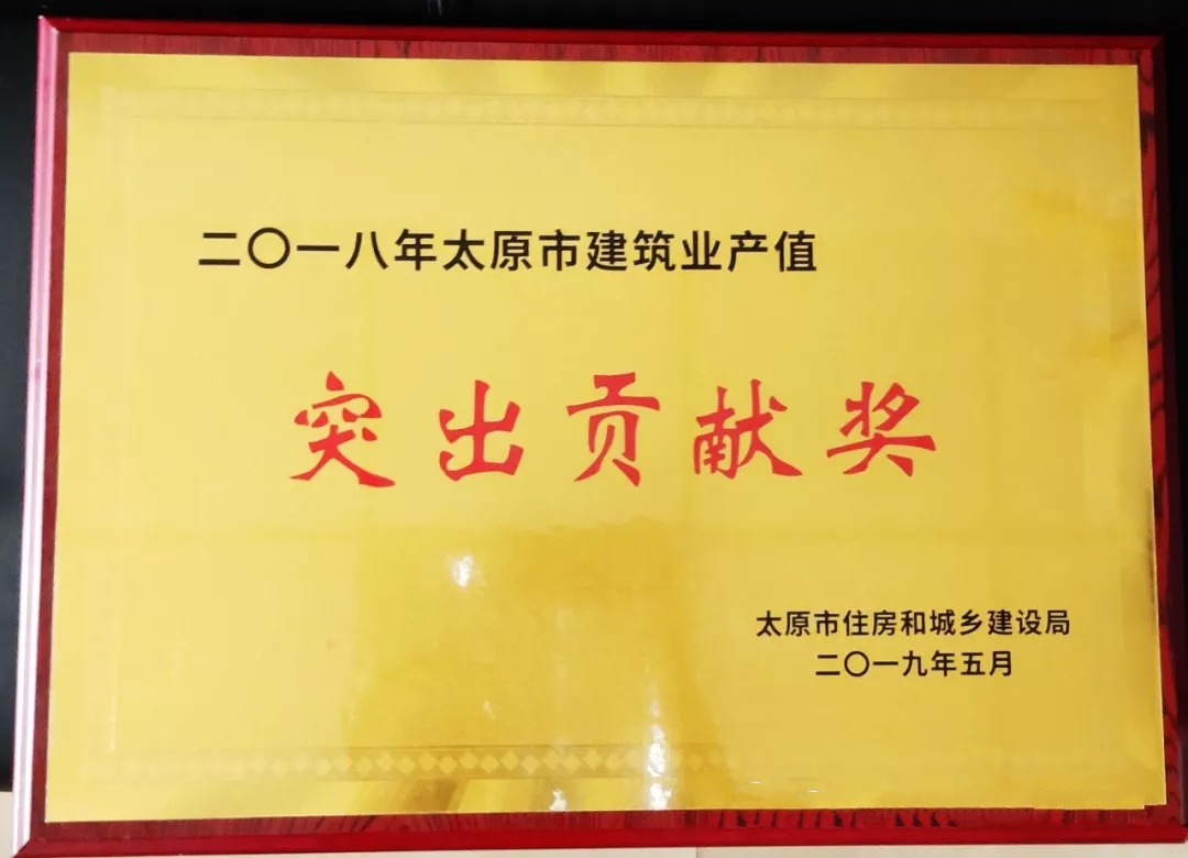 太原市政建設(shè)集團(tuán)有限公司榮獲“2018年太原市建筑業(yè)產(chǎn)值突出貢獻(xiàn)獎(jiǎng)”