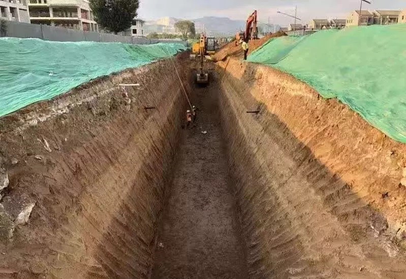 該工程道路兩側(cè)緊鄰沿線村莊的農(nóng)田、大棚,施工作業(yè)面狹窄,大量開挖土方因場(chǎng)地有限無(wú)法進(jìn)行放置,嚴(yán)重影響施工正常推進(jìn)。目前,項(xiàng)目部正在加快解決征地問(wèn)題,積極與業(yè)主、村委會(huì)等溝通聯(lián)系,爭(zhēng)取盡快突破場(chǎng)地面積小的施工難點(diǎn),擴(kuò)大施工作業(yè)面積,便于大量土方堆放,為后續(xù)施工贏得更多時(shí)間。在溝槽開挖施工時(shí),由于工程全線平均溝槽深度為8米,在道路西村段深度達(dá)到9米,但因長(zhǎng)臂挖機(jī)的機(jī)械臂長(zhǎng)度為5米,無(wú)法達(dá)到溝槽底部進(jìn)行土方外運(yùn)。項(xiàng)目部果斷采取有效措施,先利用一臺(tái)挖機(jī)進(jìn)行放坡作業(yè),將整體高度降低2.5米,在確保施工安全的前提下,再利用兩臺(tái)挖機(jī)下到下降高度處,接力倒運(yùn)土方到路面的4臺(tái)鏟車進(jìn)行清運(yùn),保證整個(gè)土方外運(yùn)工序銜接緊密、流水作業(yè),加快工程進(jìn)度。同時(shí),因施工南段道路兩側(cè)位于農(nóng)作物種植地帶,土質(zhì)屬于濕陷性黃土,無(wú)法直接用于道路施工,為加強(qiáng)工程質(zhì)量管控,項(xiàng)目部針對(duì)整個(gè)施工斷面進(jìn)行了清表及換填處理,確保道路施工符合質(zhì)量標(biāo)準(zhǔn)。