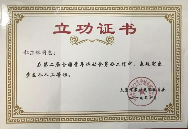近日,太原市政建設(shè)集團有限公司黨委書記、董事長郝東輝榮獲“第二屆全國青年運動會籌辦工作個人二等功”榮譽稱號。一公司工長張棟超榮獲“第二屆全國青年運動會籌辦工作個人一等功”榮譽稱號。