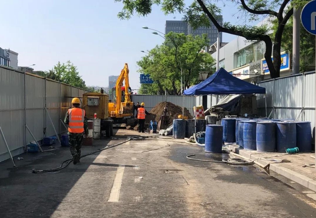 5月1日一早,三公司城南退水渠雨污分流及道路改造工程工地就響起了機(jī)械的轟鳴聲,挖掘機(jī)、注漿機(jī)、鏟車輪番上陣……項(xiàng)目部正在新建路段進(jìn)行污水接入井的注漿和支護(hù)工作,由于該區(qū)域地下土質(zhì)為液陷土,透水性較強(qiáng),易下陷,項(xiàng)目部經(jīng)過(guò)仔細(xì)研究后,決定采用二重管雙液注漿法對(duì)污水接入井進(jìn)行注漿。相較于傳統(tǒng)注漿工法,二重管雙液注漿法將兩種漿液通過(guò)雙重管輸送至鉆頭出口處進(jìn)行混合,通過(guò)調(diào)節(jié)漿液混合方式和注漿的方向性,控制注漿材料的凝結(jié)時(shí)間等,實(shí)現(xiàn)了注漿施工中對(duì)注漿方向、注漿量和注漿壓力的控制,使得加固范圍控制變得容易,漿液浪費(fèi)少,施工可操作性更好,有效確保了工程質(zhì)量。