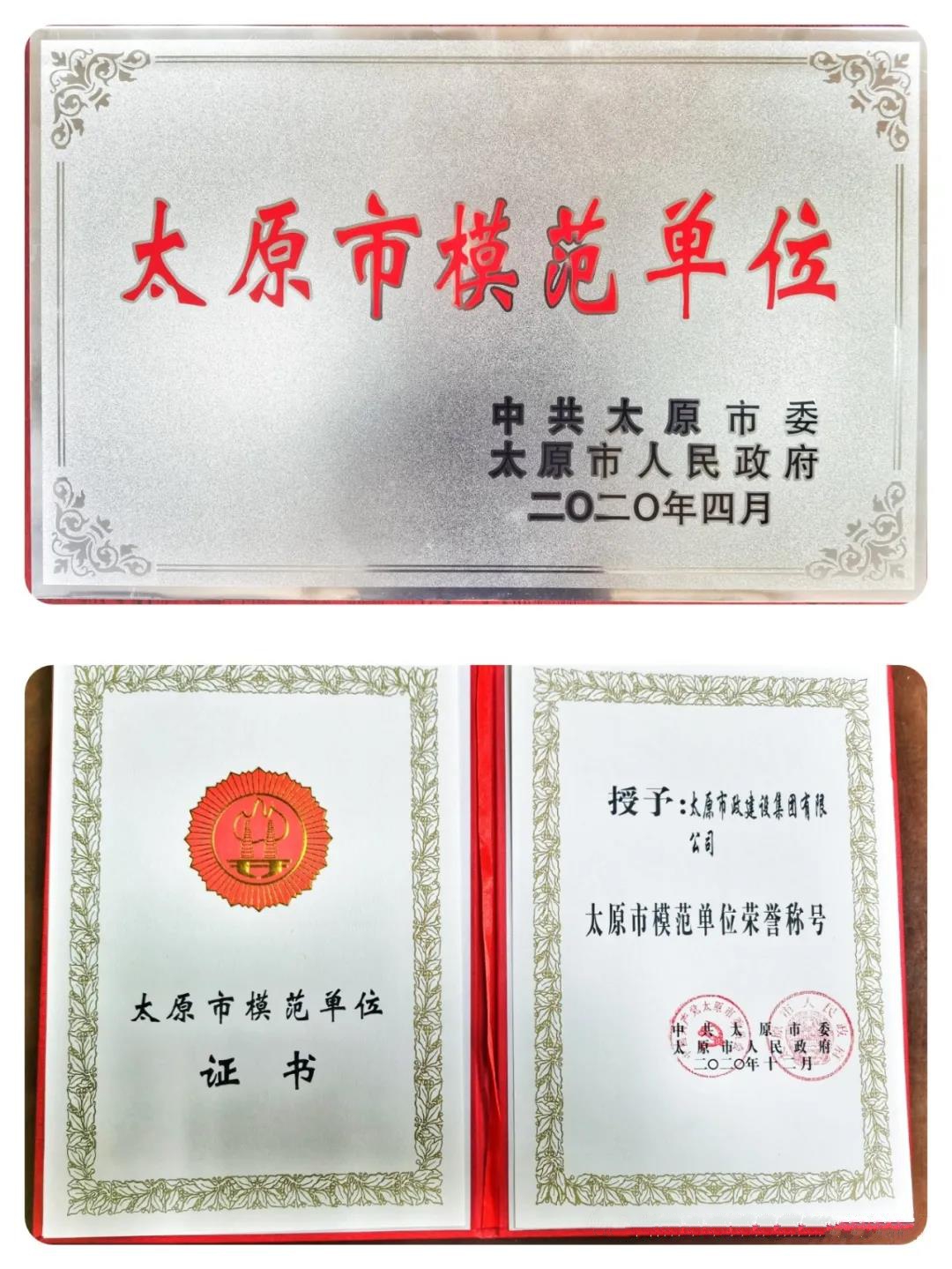 集團(tuán)公司被市委、市政府授予“太原市模范單位”榮譽(yù)稱號(hào);聚興勞務(wù)公司王留金榮獲太原市“特級(jí)勞動(dòng)模范”榮譽(yù)稱號(hào);一公司張棟超榮獲太原市“勞動(dòng)模范”榮譽(yù)稱號(hào);二公司王天榮、郝紅勝被命名為“晉陽(yáng)工匠”榮譽(yù)稱號(hào);一公司汾東污水處理廠及配套管網(wǎng)一期二步工程項(xiàng)目部、二公司火車南站西廣場(chǎng)導(dǎo)改工程項(xiàng)目部和聚興勞務(wù)公司孫瑞臣勞務(wù)隊(duì)被授予太原市“工人先鋒號(hào)”榮譽(yù)稱號(hào)。
