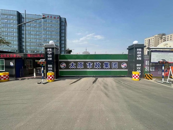該工程作為太原市今年的重點(diǎn)工程,二公司上下高度重視,開工前召開安全文明施工動員會,要求全員認(rèn)真執(zhí)行六個百分百相關(guān)要求,提前規(guī)劃安全文明施工具體內(nèi)容,全力打造安全文明標(biāo)準(zhǔn)化工地。項目部認(rèn)真落實(shí)創(chuàng)建綠色文明工地要求,嚴(yán)格執(zhí)行《太原市建設(shè)工程安全文明標(biāo)準(zhǔn)化管理手冊》標(biāo)準(zhǔn),注重創(chuàng)新改善項目部整體外觀形象,重新設(shè)計了項目部入口和圍擋,采用反光噴繪布覆蓋工地大門,并對大門周邊輪廓進(jìn)行不銹鋼條鑲嵌,方便夜間車輛進(jìn)出工地;在大門門柱上方加裝“帽檐”,四邊用鋼條裝飾,讓大門整體更顯美觀。同時,項目部根據(jù)廣場周邊人口密集、商場眾多等情況,在圍擋的設(shè)計上進(jìn)行改良,將傳統(tǒng)的3毫米鋼板改為5毫米鋼板,并用噴繪布全范圍覆蓋,提高了圍擋整體牢固度和美觀度。